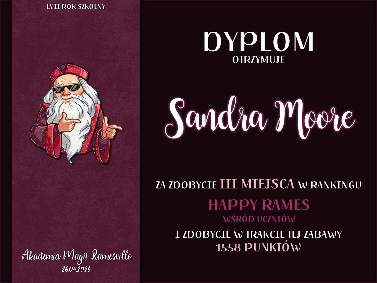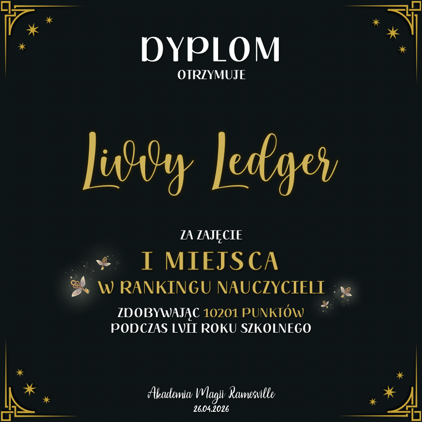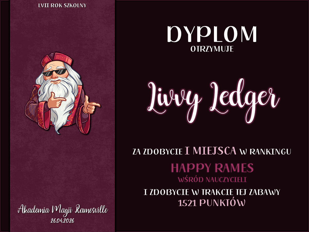 Przybywam do Was z podsumowaniem Waszej pracy. Punkty wkrótce zostaną dodane do Rankingu Nauczycieli a galeony wylądują w waszych skrytkach. Jeżeli ktoś z Was zauważy jakąś pomyłkę, to proszę o wiadomość prywatną. SZYBKO! Pełen spis punktów znajduje się poniżej. Skróty w tabeli zostały wyjaśnione w notatce, wystarczy nakierować kursorem na nazwę kolumny.