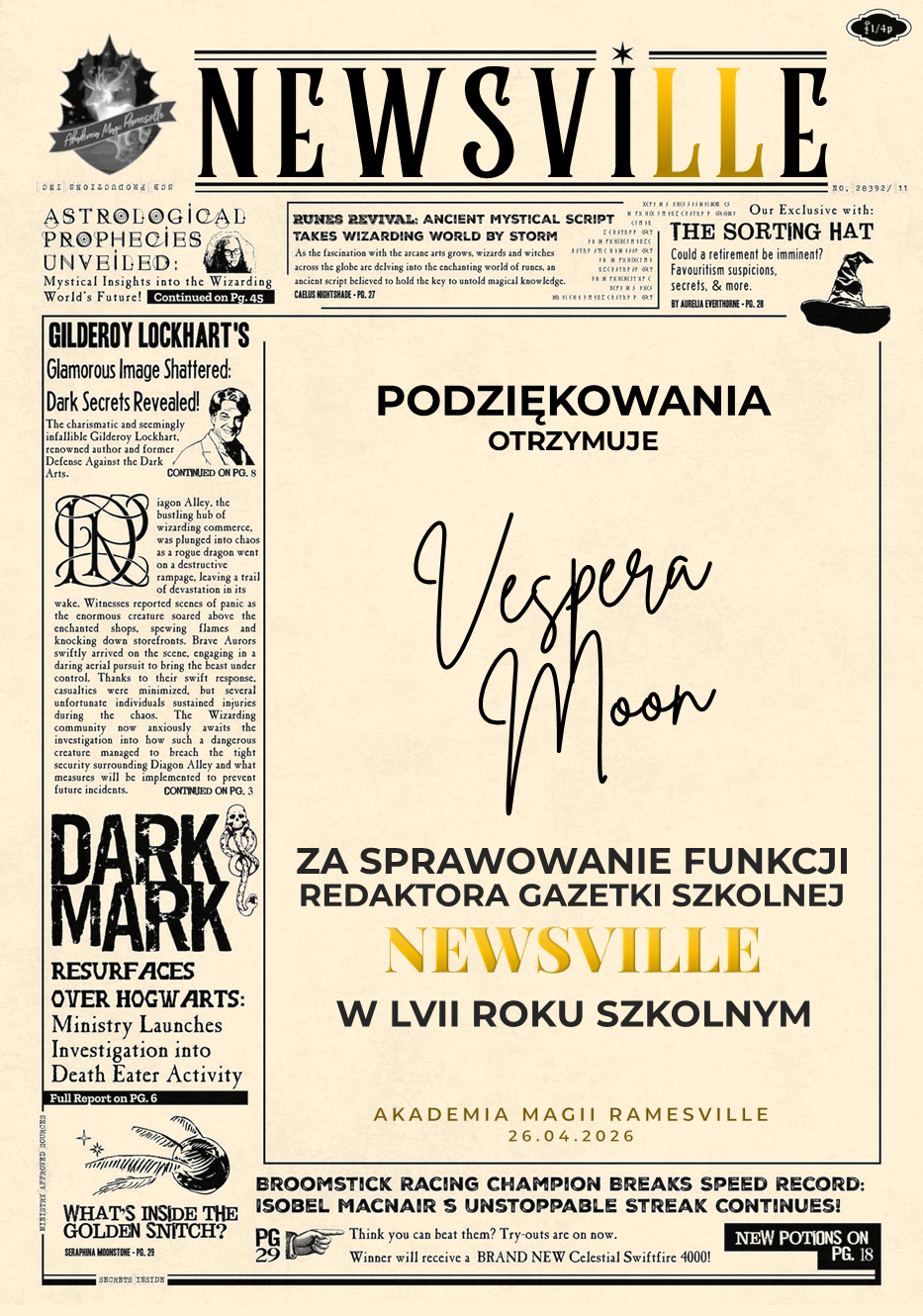Już jutro o tej godzinie wszyscy będziemy wyczekiwać ceremonii zakończenia LVII roku szkolnego. Jednak zanim to nastąpi należy rozliczyć się ze wszystkich obowiązków. Przygotowaliśmy dwa Was zbiorcze zestawienie ósmego i dziewiątego tygodnia tego semestru. Znajdziecie tam takie rzeczy jak: Akcja Reklama, Atak Akromantuli, Baśnie Ramesville, Festiwal pięciu lampionów, Happy Rames, konkursy prefektów domowych, konkurs prefektów naczelnych, konkurs stażystek, konkurs z Wróżbiarstwa, Lista Zakupów, Losville #8 i #9, Naczelna Kwietniówka, Newsville, Pokój Życzeń, POP! Revelio, Potterville, Rubinowe Wyzwania, Zagadkowe Jaja, Zguby Kryształka oraz punkty za pomoc w liczeniu punktów.