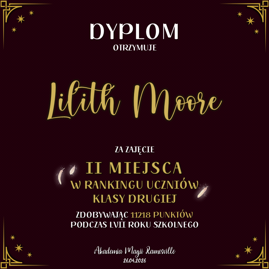 - [S] Lilith Moore - Wybitny (śr. 5,82 egz. 100%)