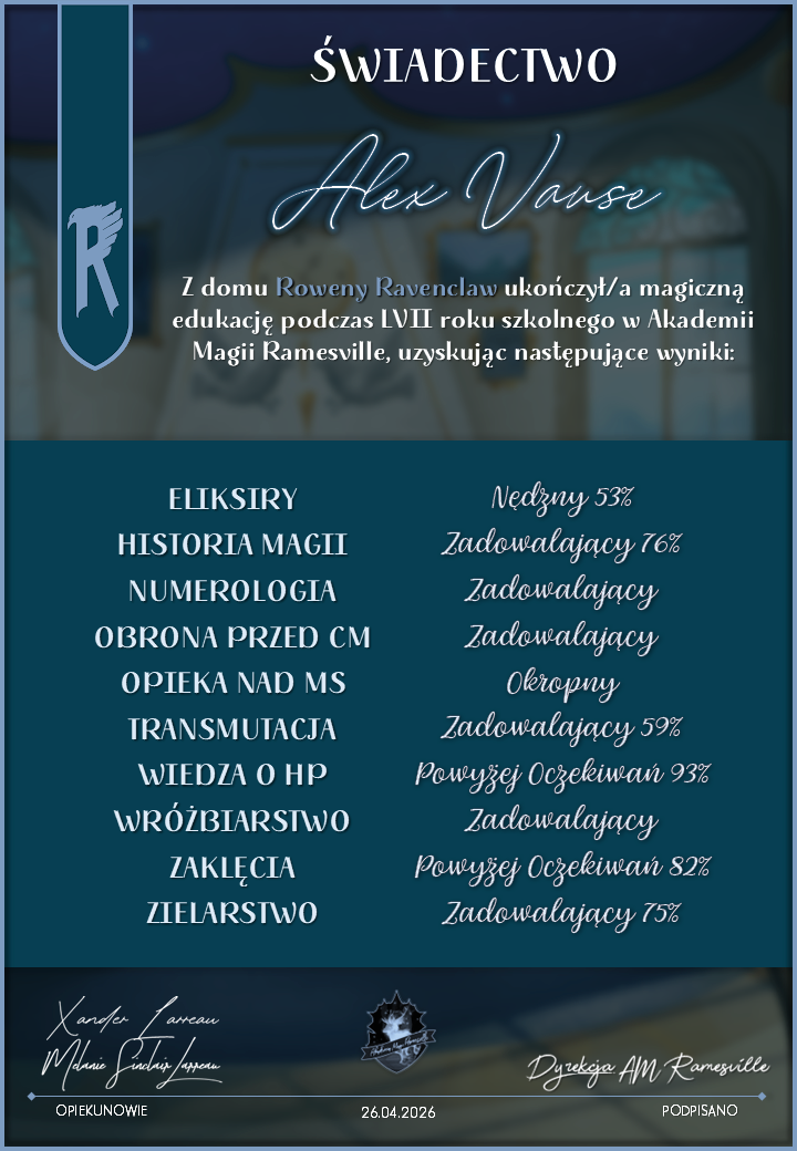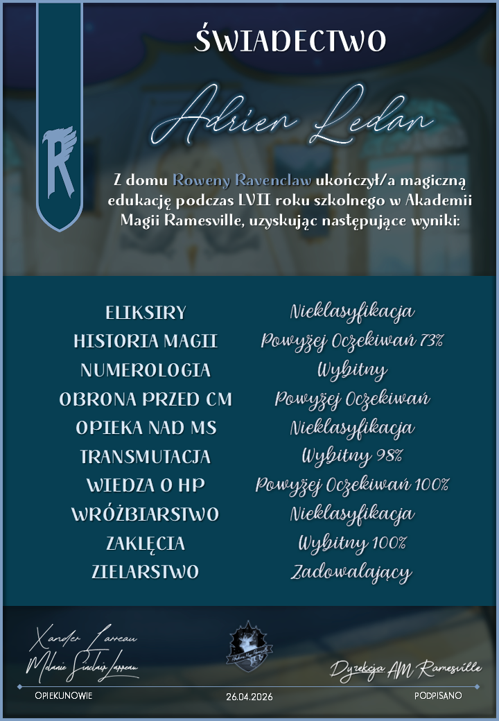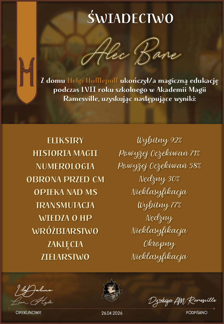 - [R] Arno Cadmack - Wybitny (śr. 6,0 spr. 100%)