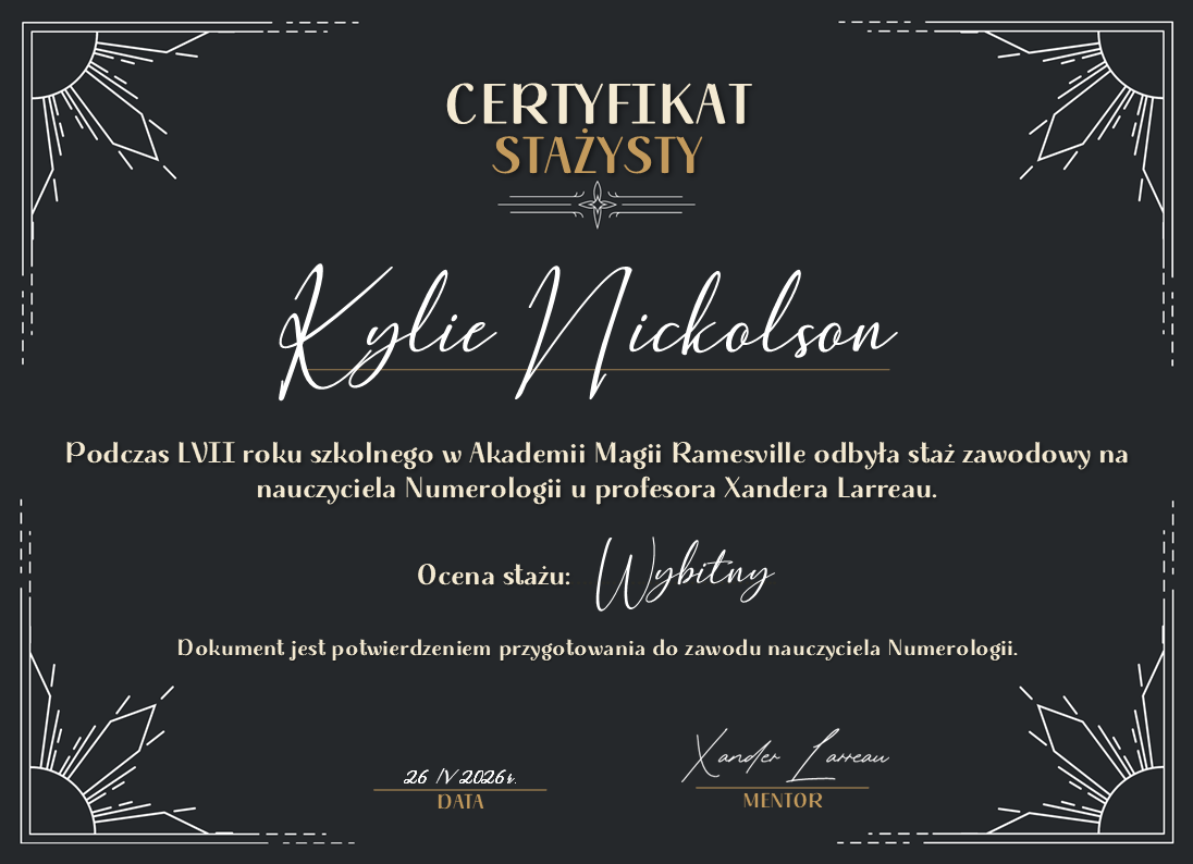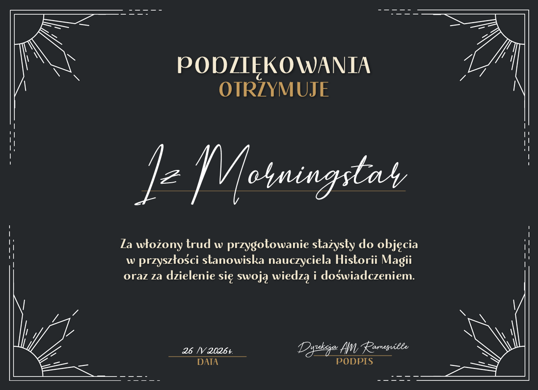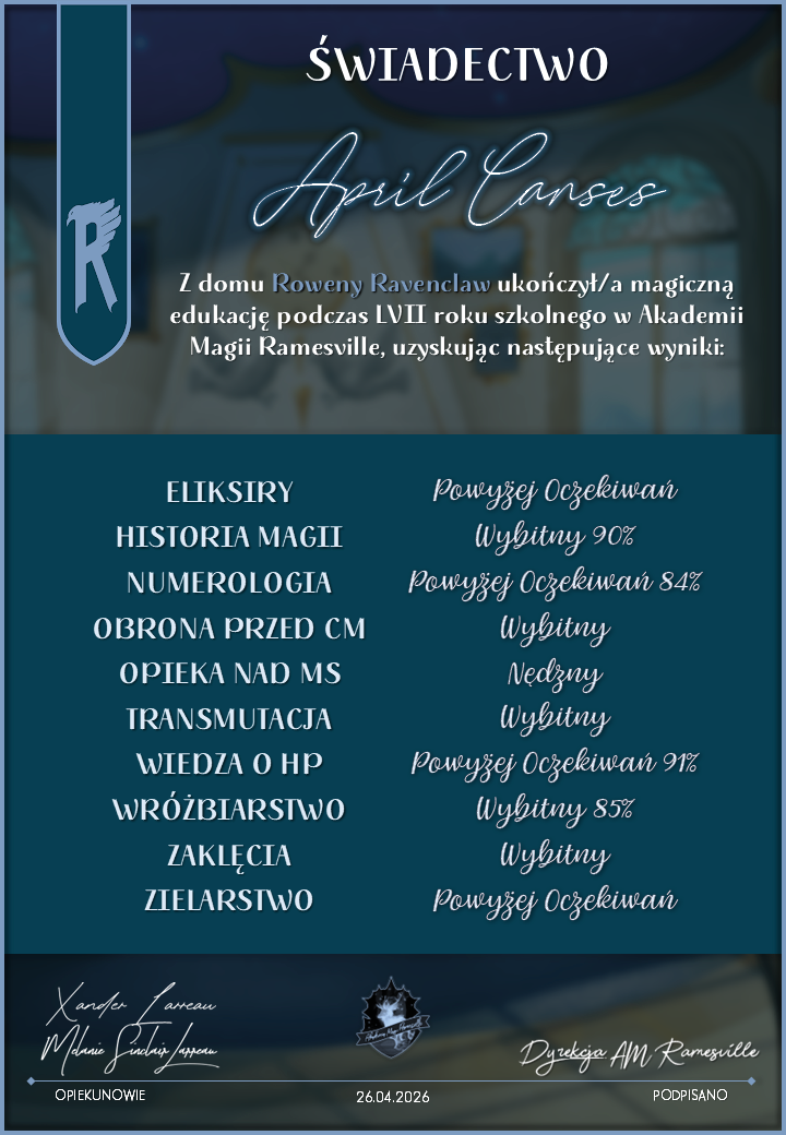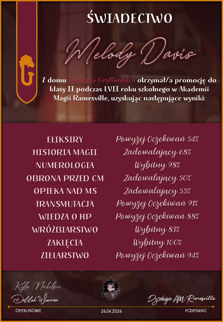 - [S] Isobel McGonagall - Wybitny (śr. 5,85 spr. 100%)