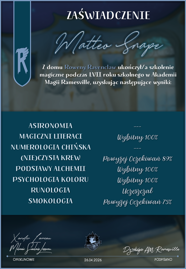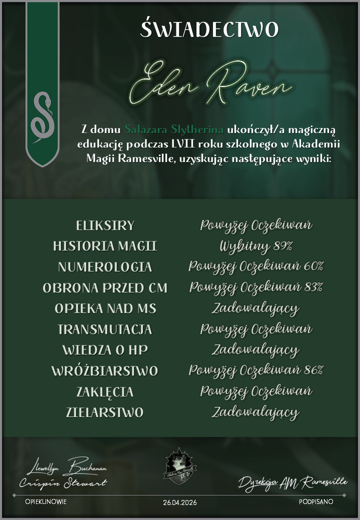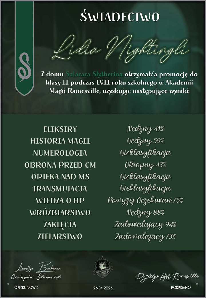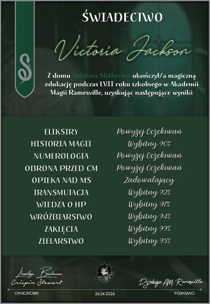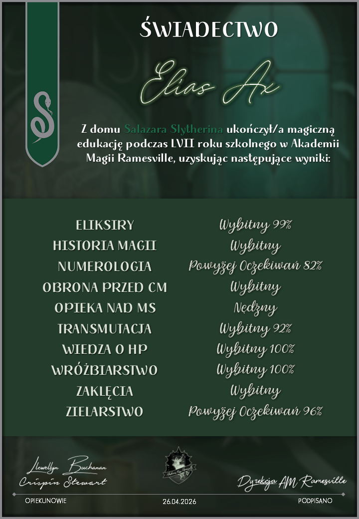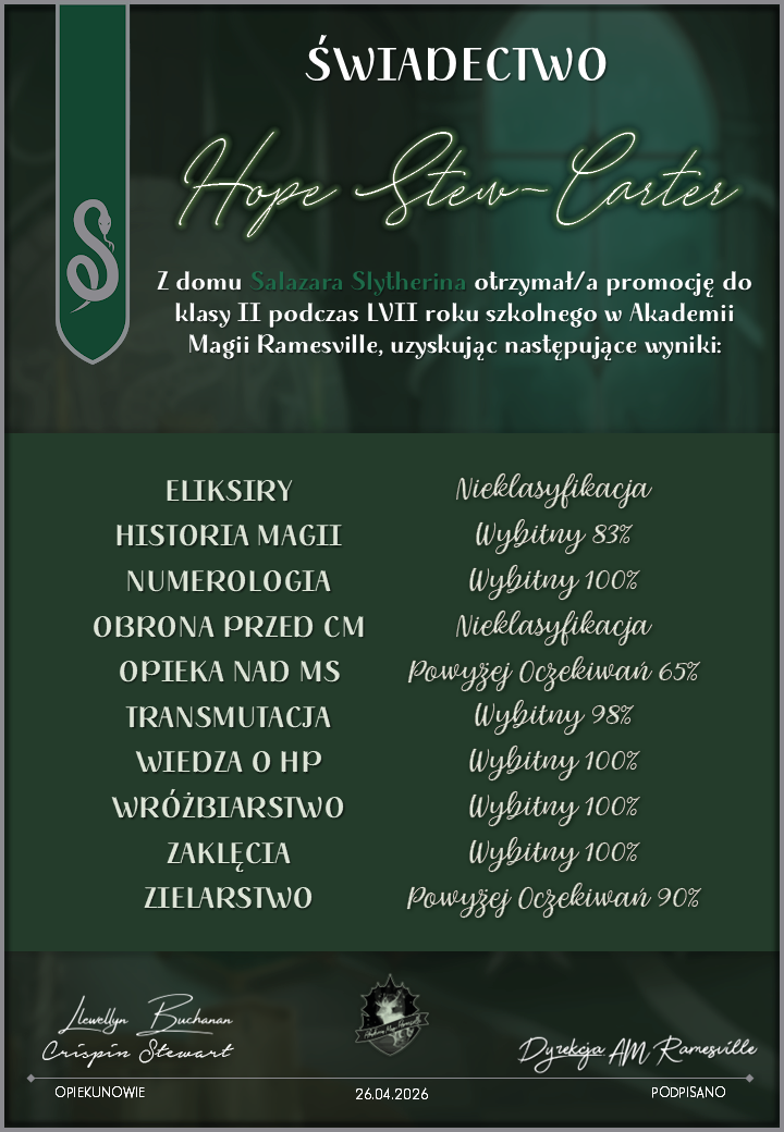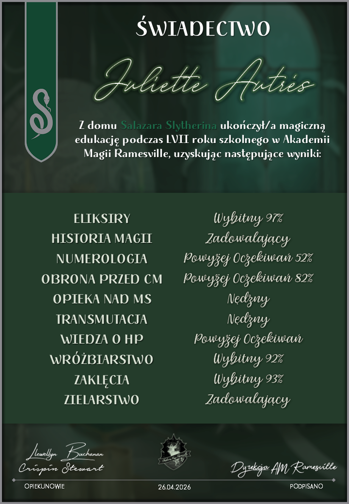 - [S] Agusia Slytherin - Wybitny (śr. 6,0 egz. 95%)