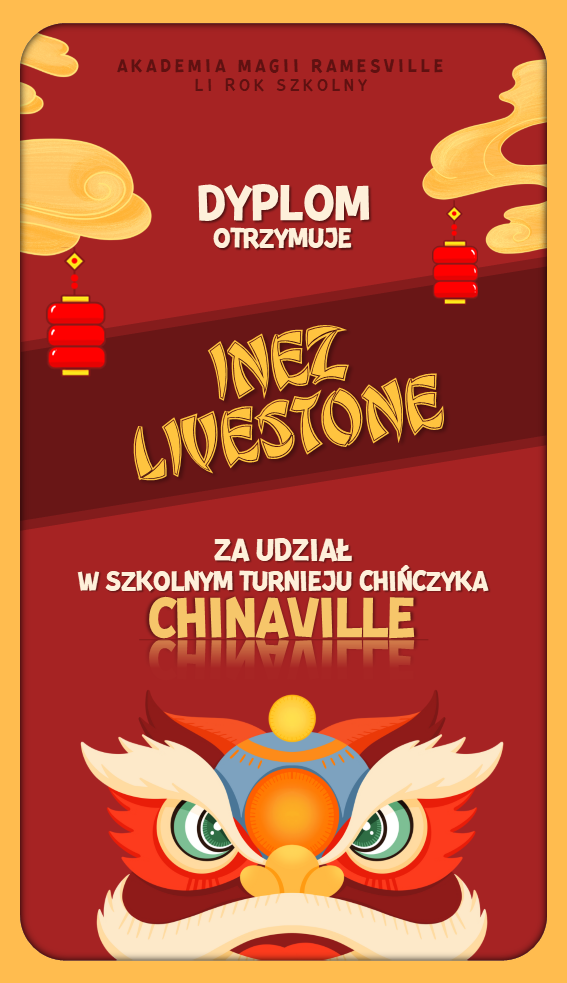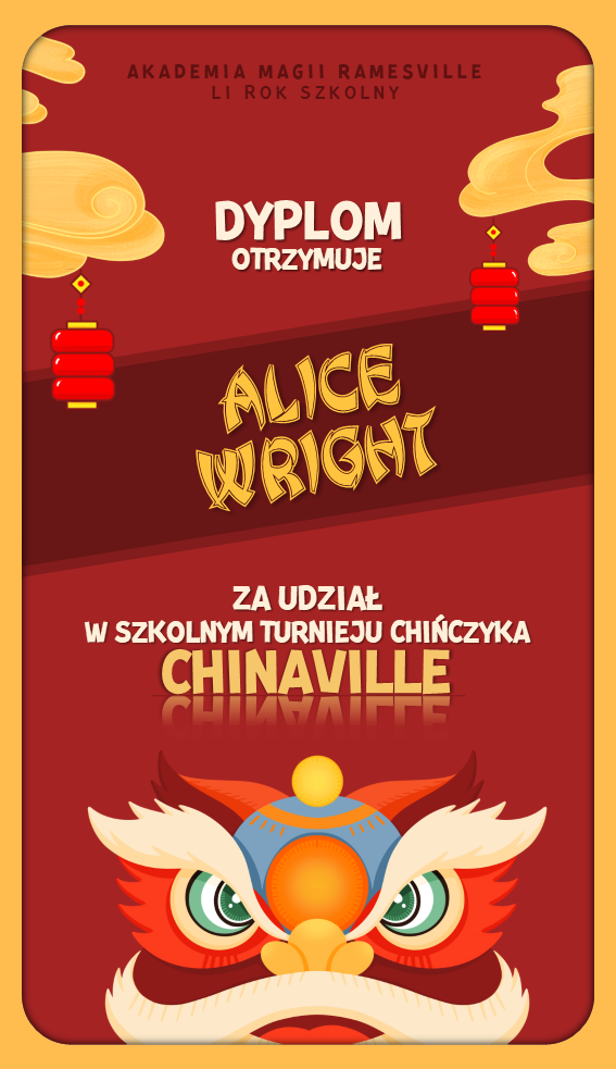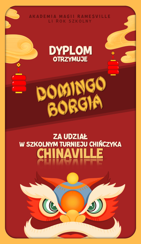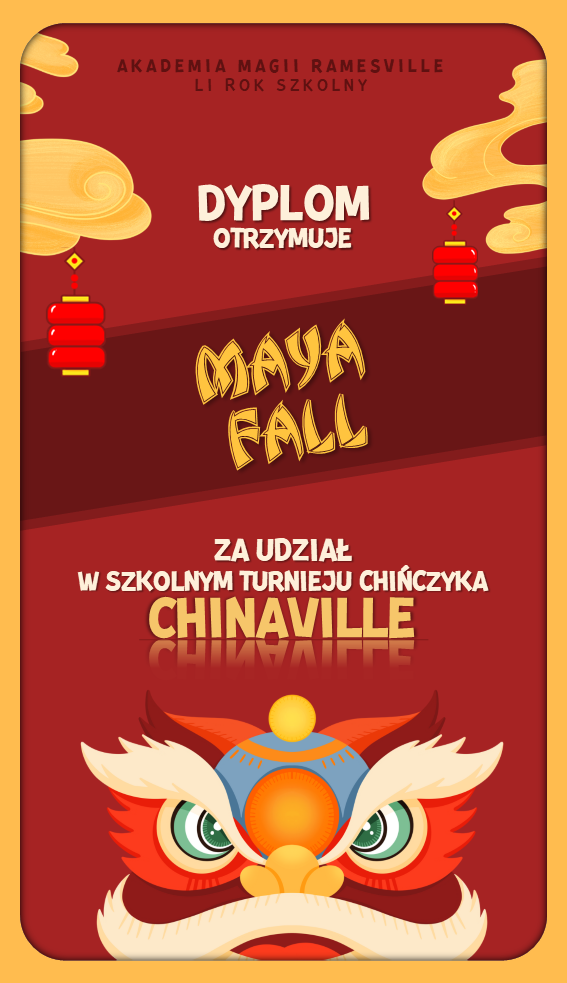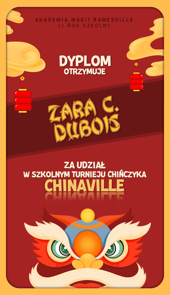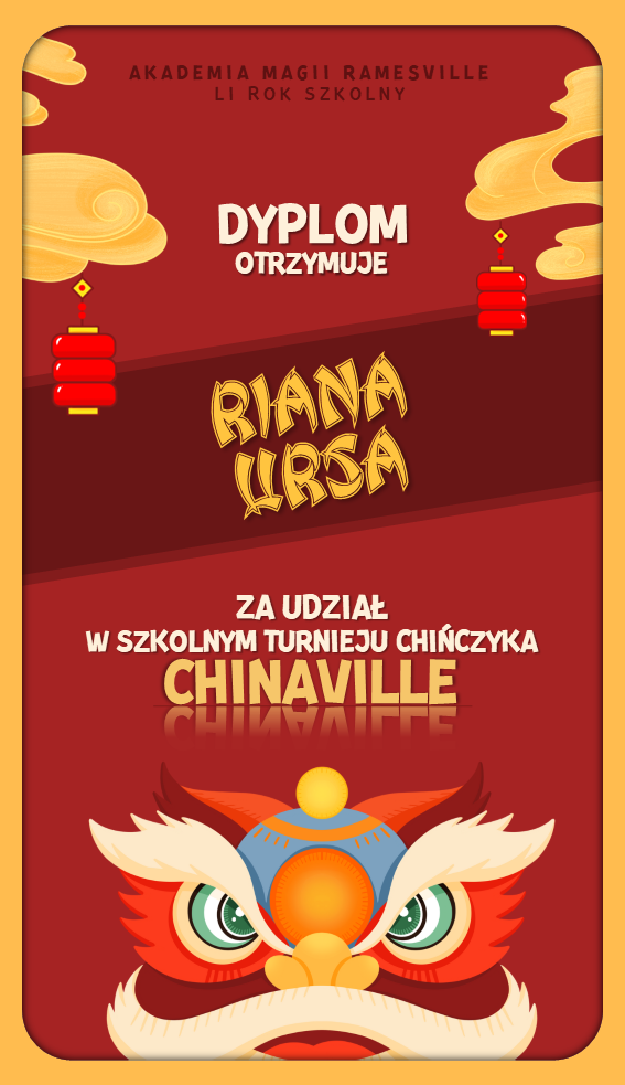 W trakcie tego semestru odbyła się kolejna edycja turnieju "Chinaville", w którym uczestnicy zmagali się w pojedynkach w grze w chińczyka. Tutaj znajdują się dyplomy dla wygranych: