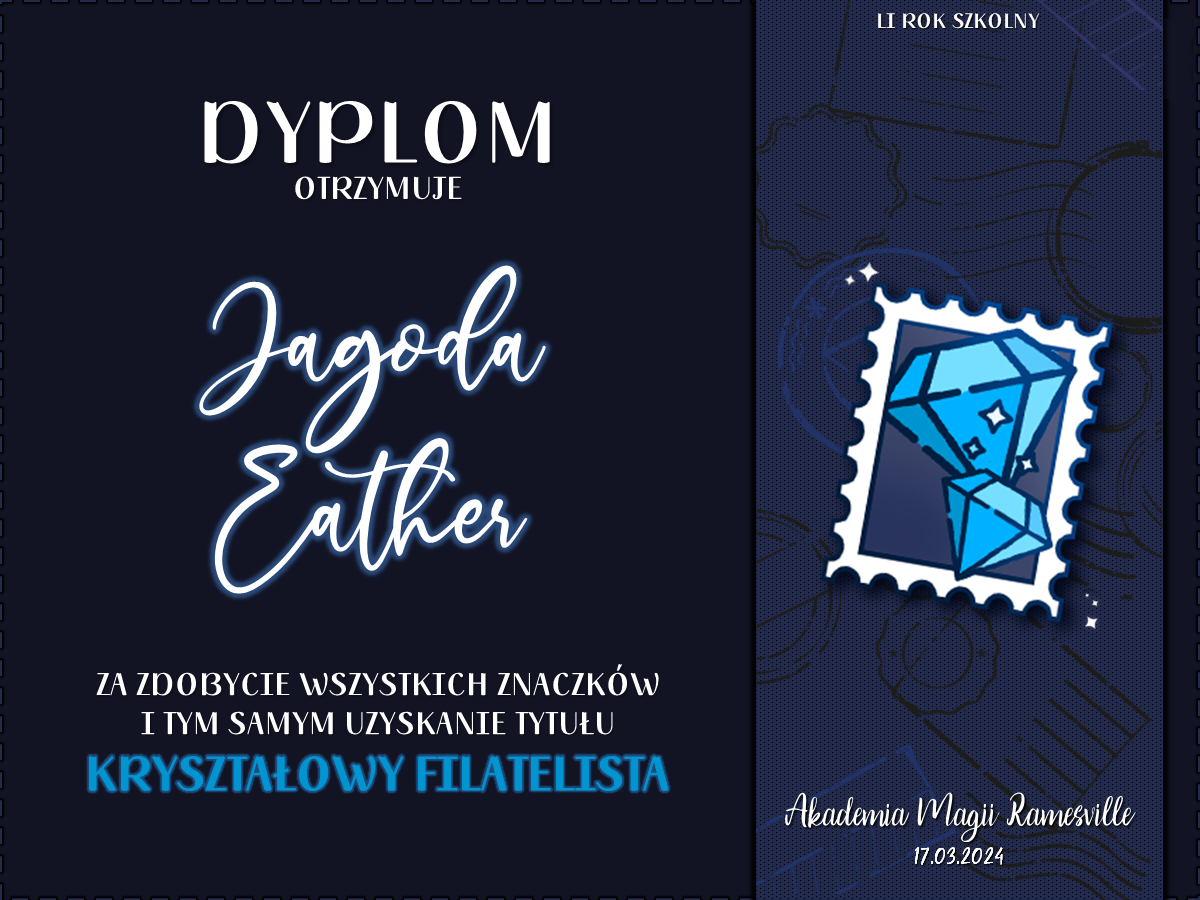 Dodatkowo wszystkie osoby, którym udało zebrać się całą kolekcję znaczków z Kryształowego Klasera, otrzymują tytuły Kryształowego Filatelisty