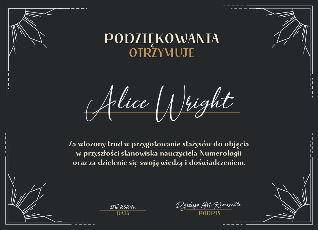W tym roku dwoje stażystów podjęło się staży i oboje z powodzeniem zakończyli proces przygotowawczy do zostania nauczycielem obranego przedmiotu. Poniżej znajdują się certyfikaty potwierdzające ukończenie szkolenia: