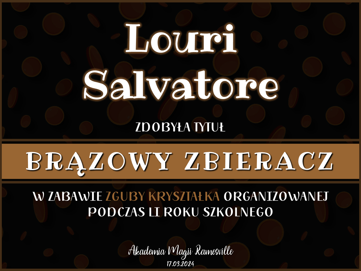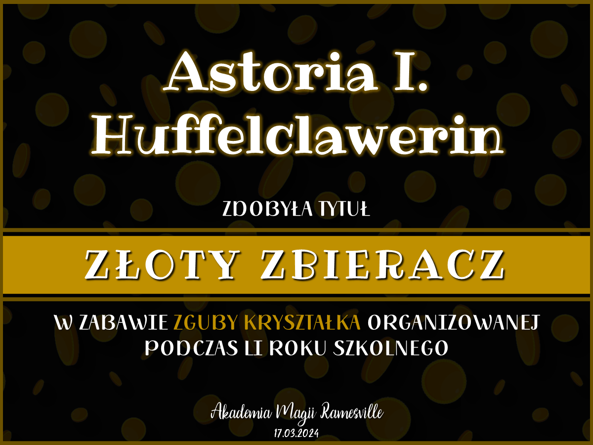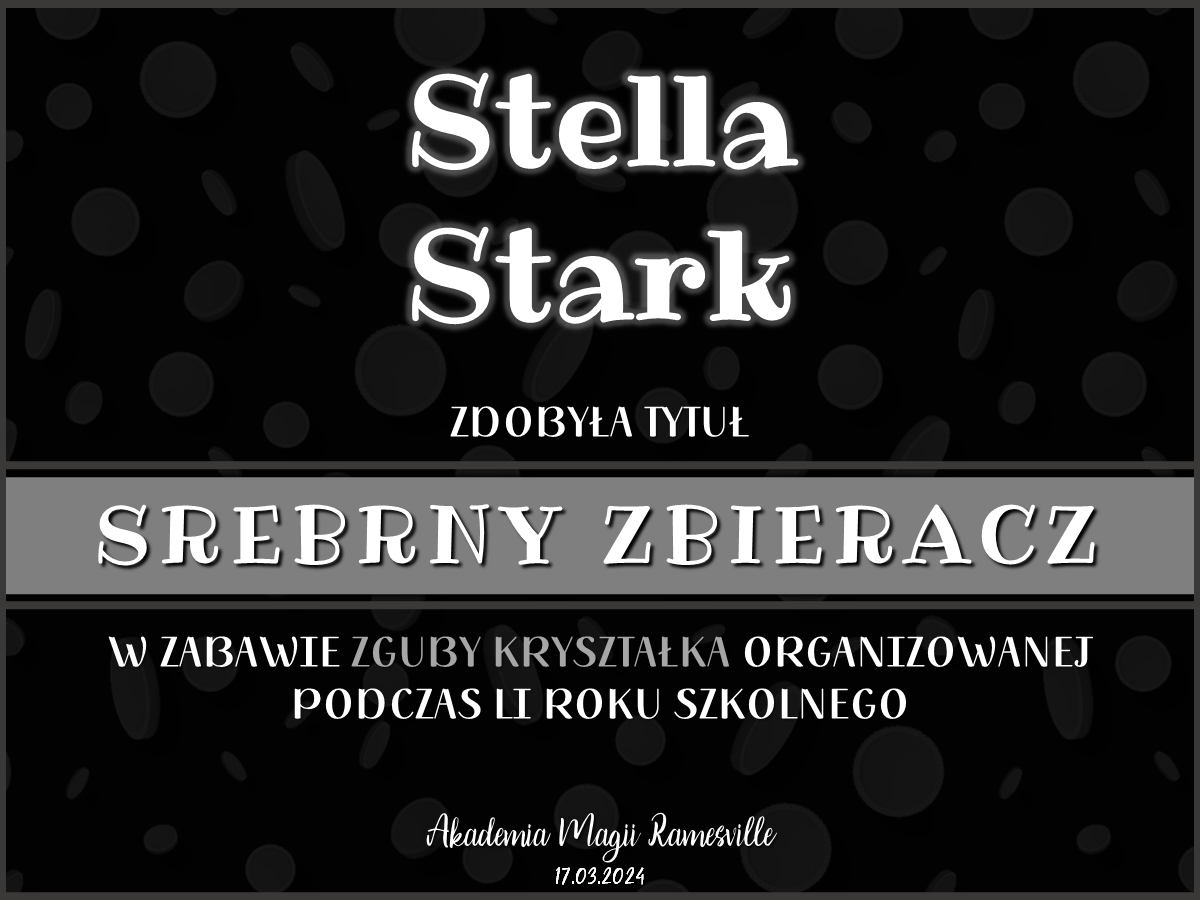 Oprócz tego w trakcie trwania całego semestru w Kryształowej Komnacie co jakiś czas Kryształek rozrzucał różne monety w ramach zabawy Zguby Kryształka. Poniżej znajdują się dyplomy dla najbardziej aktywnych osób:
