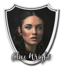 Alice Wright jest absolwentką Akademii Magii Ramesville, która należała do domu Roweny Ravenclaw. Ukończyła edukację z wysokimi wynikami aż dwa razy. Odbyła cztery staże zawodowe - z Numerologii, Opieki nad Magicznymi Stworzeniami, Transmutacji oraz Wróżbiarstwa. Od XL roku szkolnego naucza Numerologii. Wraz z Nathaliną Maloy w XLI semestrze została powołana na stanowisko wicedyrektorki przez dyrekcję w składzie: Crispin Stewart, Isabella Stewart, Kazbiel Thundershout i Vivienne Levittoux. W następnym semestrze została dyrektorką szkoły i pełniła swoją funkcję przez dziewięć kolejnych lat szkolnych. Raz była opiekunką domu Godryka Gryffindora, przez dwa semestry opiekowała się domem Helgi Hufflepuff, a przez cztery semestry domem Roweny Ravenclaw. Z Krukonami dwukrotnie zdobyła Puchar Domów. Za drugim razem dom po raz pierwszy w historii zdobył ponad 100 tysięcy punktów w ciągu jednego semestru. Przez jeden rok szkolny była Opiekunką Staży. Była także członkinią składu dyrekcji, który zdecydował się na wprowadzenie do oferty szkolenia magicznego.