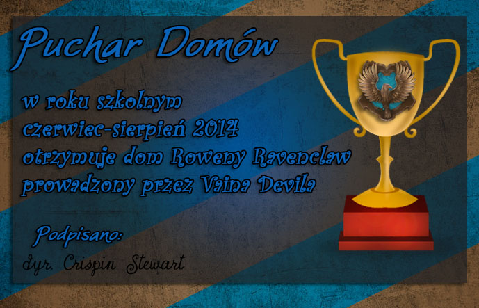 Przez ciężką pracę dom Roweny Ravenclaw prowadzony przez prof. Lucasa Spella zdobył Puchar Domów! Gratulacje! (PUCHAR)