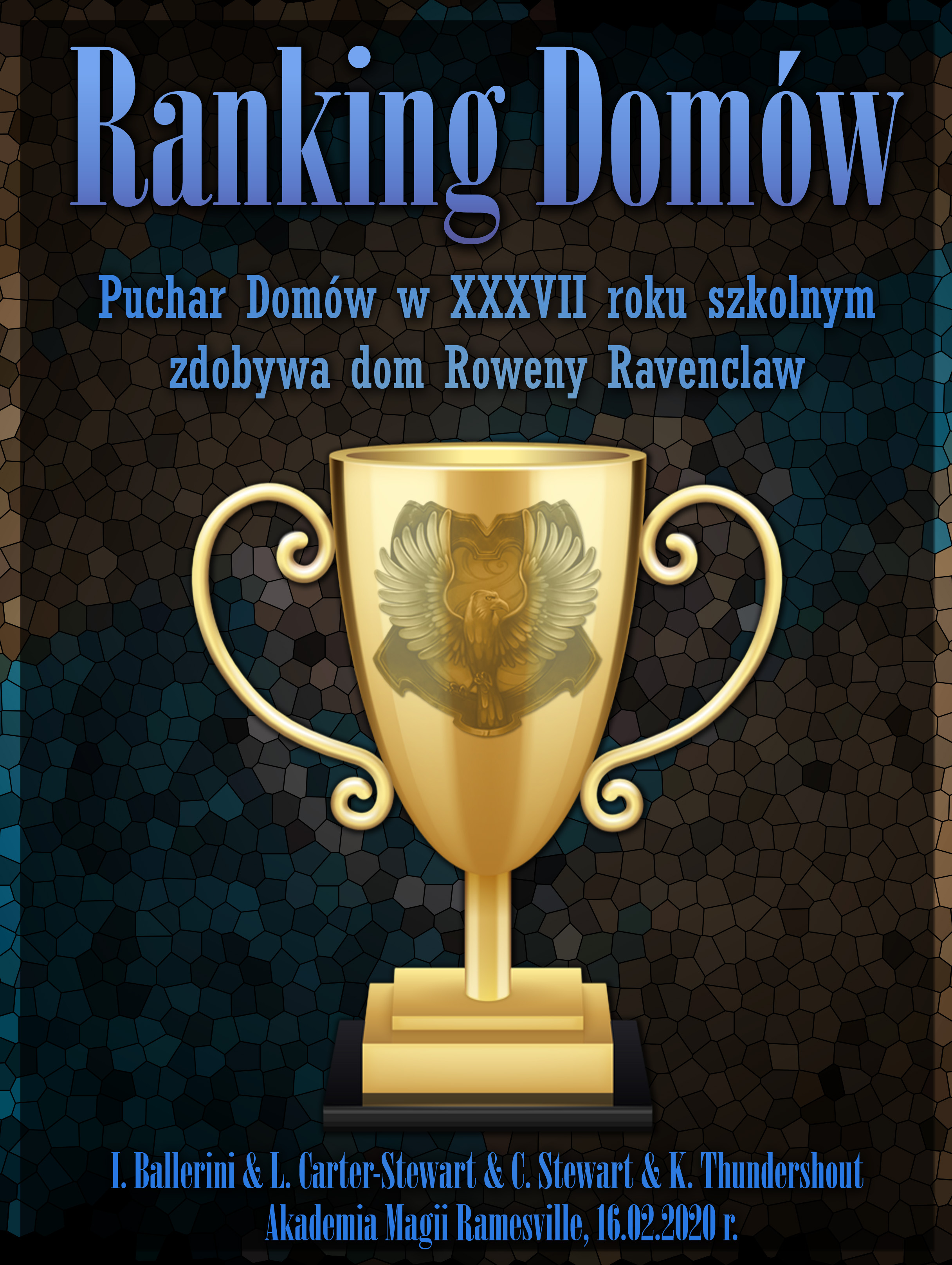 Puchar został w rękach domu Roweny Ravenclaw, wywalczyli go zdobywając 5312 punktów! Dom był prowadzony przez profesor Aniulexx Turn. (PUCHAR)